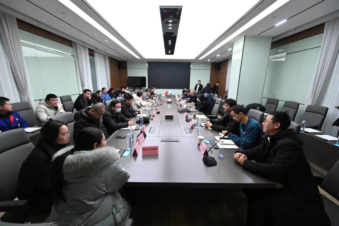 在超信集团会议中心,无锡安生技防智联技术有限公司负责人马裕辰汇报了“互联网+特种作业人员综合管理服务”系统建设试点工作情况,现场演示了公司研发的“锡芯焊”电焊智慧开关、“码上焊”电焊物联监测平台和无锡市熔化焊接与热切割作业用工服务平台的功能,并就电焊外包用工行业现状与未来规划进行交流讨论。