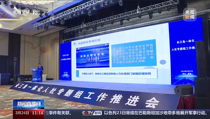 3月24日,中央广播电视总台新闻频道《新闻直播间》播出《长三角一体化人社专题组工作推进会》;